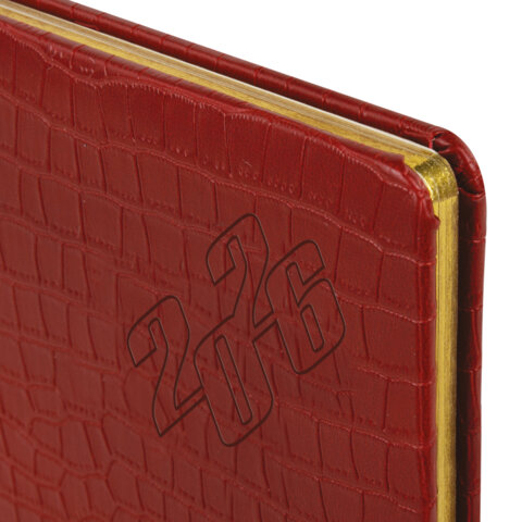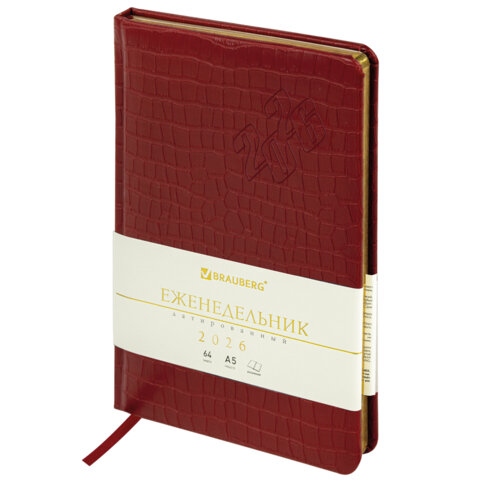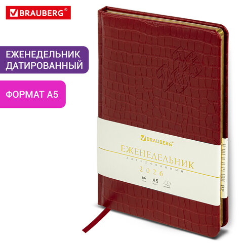 Еженедельник датированный 2026 А5 145х215 мм, BRAUBERG "Comodo", под кожу, красный, 117168