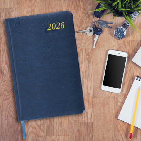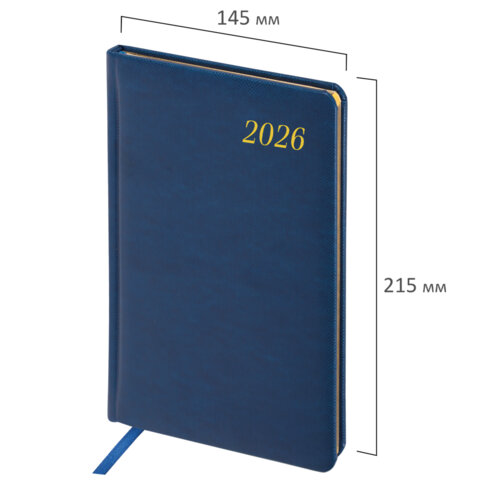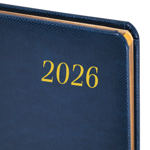 Еженедельник датированный 2026, А5, 145х215 мм, BRAUBERG "Iguana", под кожу, синий, 117170