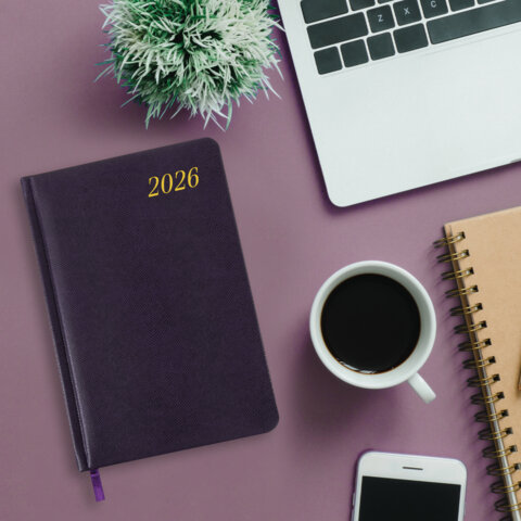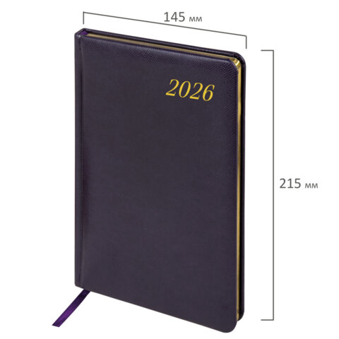 Еженедельник датированный 2026, А5, 145х215 мм, BRAUBERG "Iguana", под кожу, темно-фиолетовый, 117172