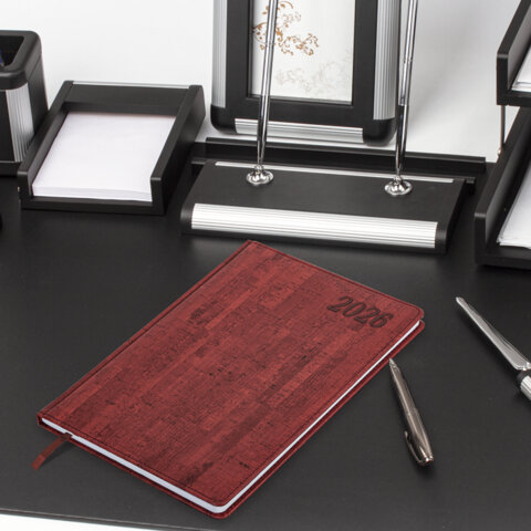 Еженедельник датированный 2026 БОЛЬШОЙ ФОРМАТ 210х297 мм, А4 BRAUBERG "Wood", под кожу, бордо, 117159