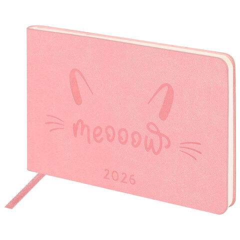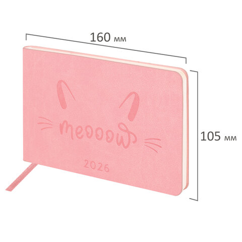 Еженедельник датированный 2026 МАЛЫЙ ФОРМАТ 105х160 мм, А6, BRAUBERG "Imprint", тиснение, розовый, 117213
