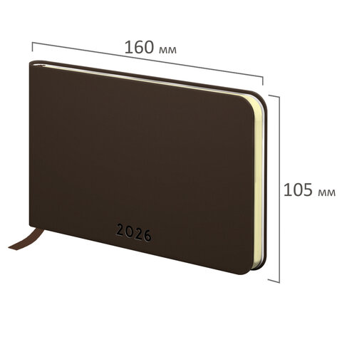 Еженедельник датированный 2026 МАЛЫЙ ФОРМАТ 105х160 мм, А6, BRAUBERG "Unique", темно-коричневый, 117207