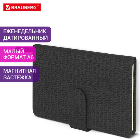 Еженедельник датированный 2026 МАЛЫЙ ФОРМАТ 95х155 мм, А6, BRAUBERG "Augustus", под кожу, черный, 117186