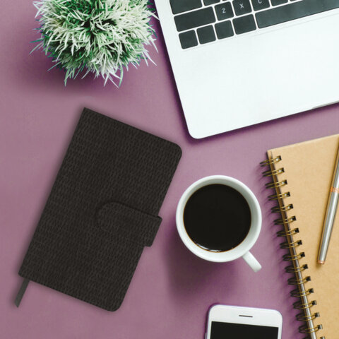 Твердая обложка черного цвета еженедельника BRAUBERG "Augustus" стилизована под кожу с текстурной выработкой и фиксируется магнитной застежкой, поэтому еженедельник не откроется в сумке или портфеле и страницы не помнутся. Подходит для горячего тиснения.