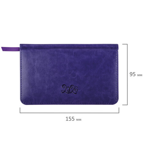 Еженедельник датированный 2026, МАЛЫЙ ФОРМАТ 95х155 мм, А6, BRAUBERG "Rainbow", под кожу, сиреневый, 117191