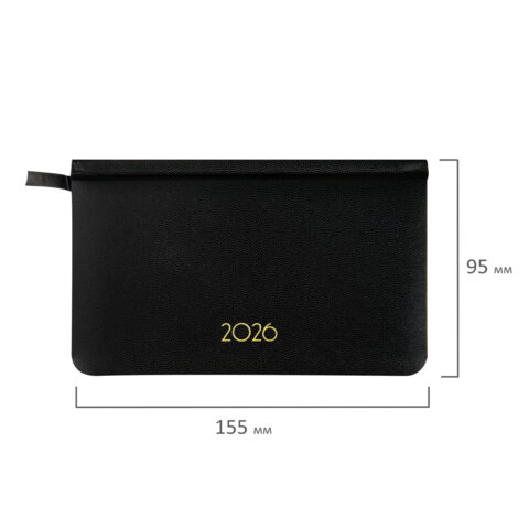 Еженедельник датированный 2026, МАЛЫЙ ФОРМАТ 95х155 мм, А6, BRAUBERG "Select", балакрон, черный, 117193