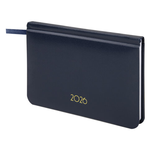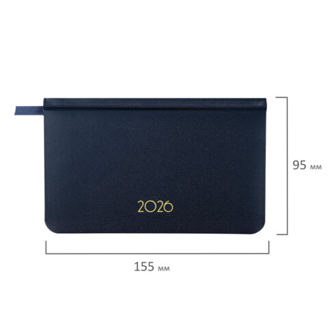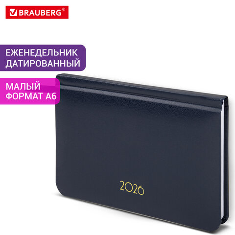 Еженедельник датированный 2026, МАЛЫЙ ФОРМАТ, 95х155 мм, А6, BRAUBERG "Select", балакрон, темно-синий, 117192