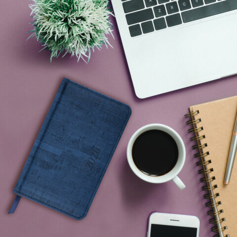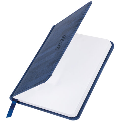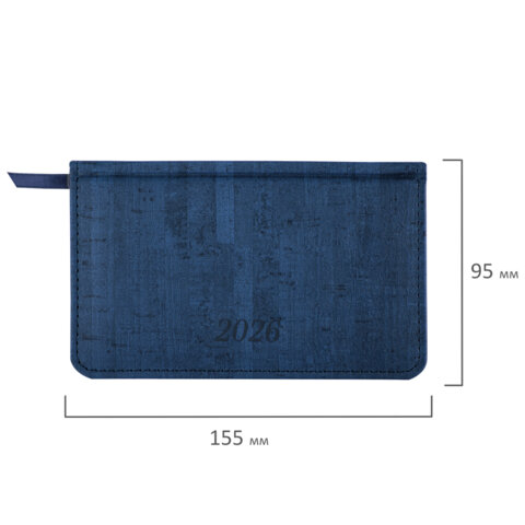 Еженедельник датированный 2026 МАЛЫЙ ФОРМАТ 95х155 мм, А6, BRAUBERG "Wood", под кожу, синий, 117195