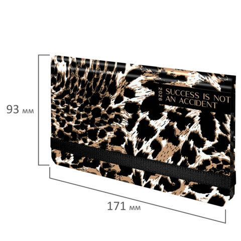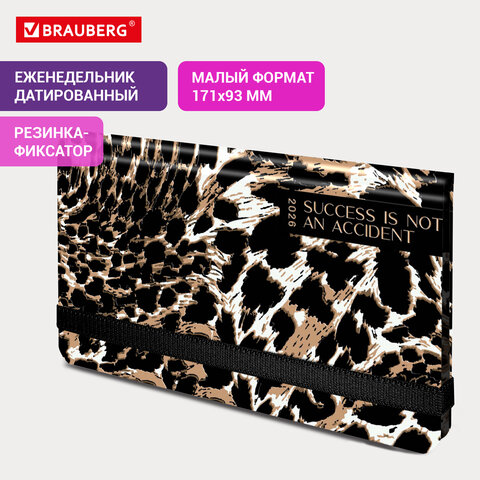 Еженедельник датированный 2026 с резинкой 171х93 мм, BRAUBERG, твердый, УФ-ЛАК, 64 л., "Леопард", 117356