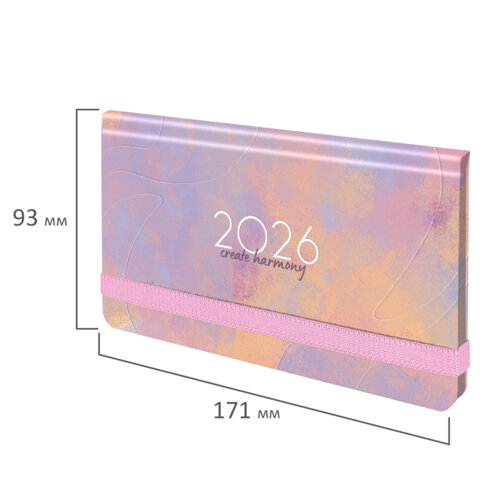 Еженедельник датированный 2026 с резинкой 171х93 мм, BRAUBERG, твердый, УФ-ЛАК, 64 л., "Пастель", 117355