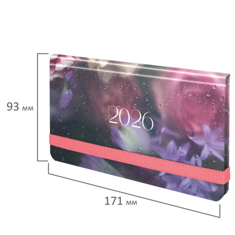 Еженедельник датированный 2026 с резинкой 171х93 мм, BRAUBERG, твердый, УФ-ЛАК, 64 л., "Цветы", 117348