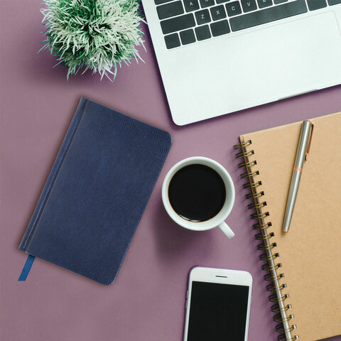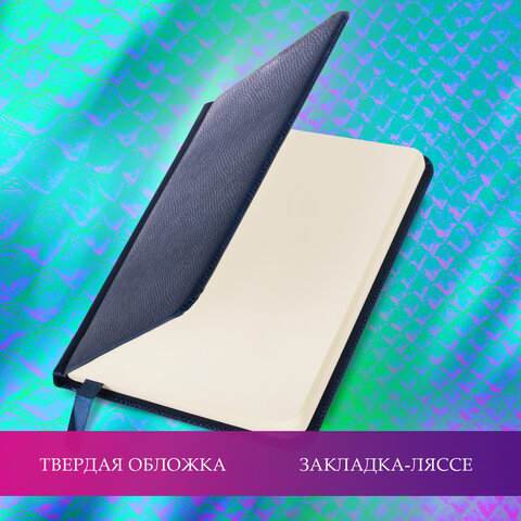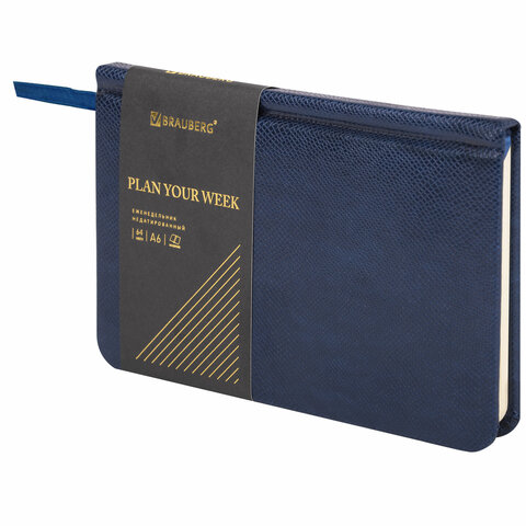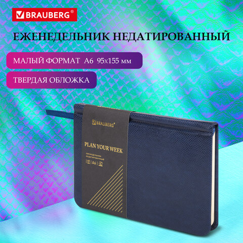 Еженедельник недатированный МАЛЫЙ ФОРМАТ 95х155 мм, А6, BRAUBERG "Iguana", под кожу, 64 л., синий, 114479