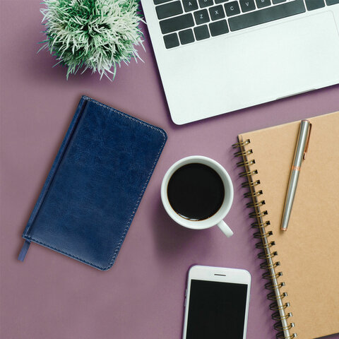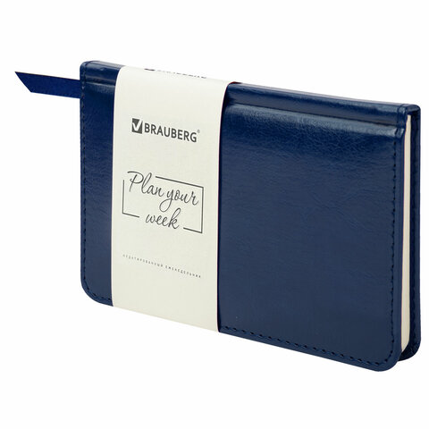 Еженедельник недатированный МАЛЫЙ ФОРМАТ 95х155 мм А6 BRAUBERG "Imperial" под кожу, 64 л., темно-синий, 126186
