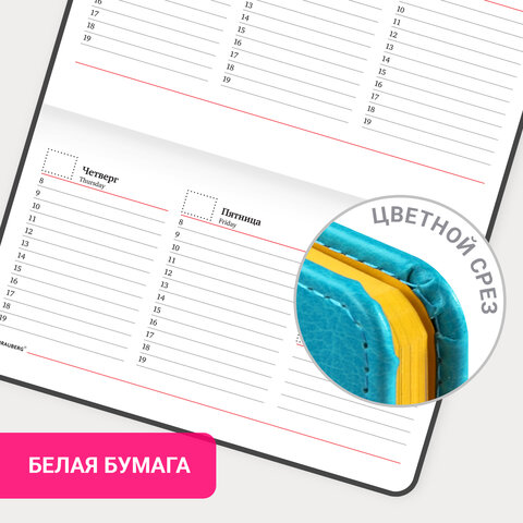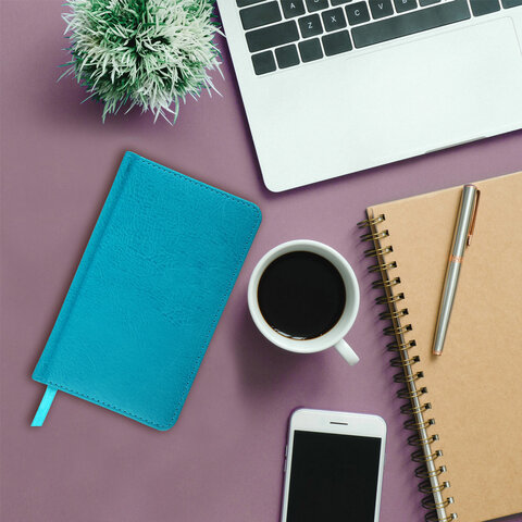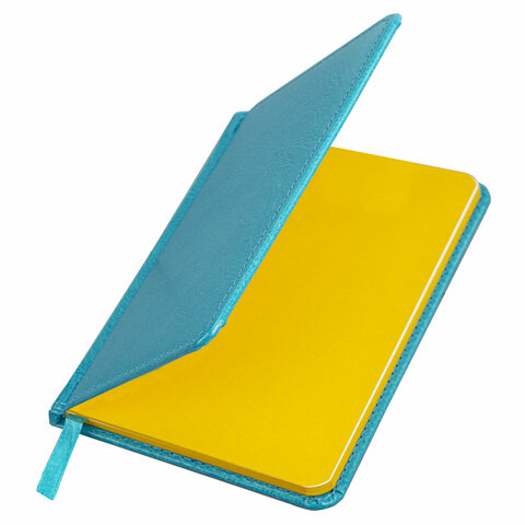 Еженедельник недатированный МАЛЫЙ ФОРМАТ 95х155 мм А6 BRAUBERG "Rainbow", под кожу, 64 л., бирюзовый, 114483
