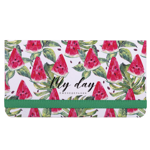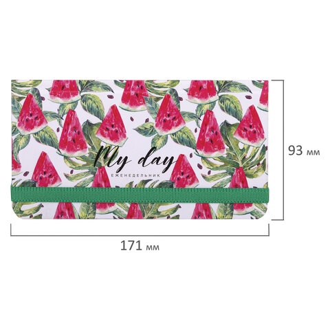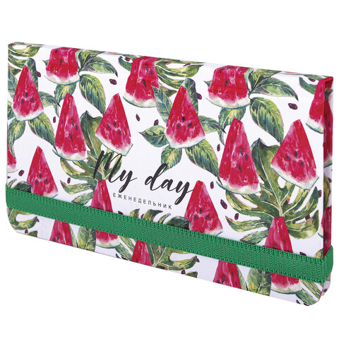 Еженедельник недатированный с резинкой (171х93 мм), BRAUBERG, твердый, УФ-ЛАК, 64 л., "Watermelon", 114577