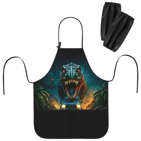 Фартук с нарукавниками для уроков труда BRAUBERG KIDS, 2 кармана, регулировка по росту, 46x54 см, "Dino chase", 273760