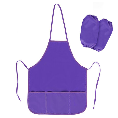 Фартук с нарукавниками для уроков труда ПИФАГОР, 3 кармана, стандартный размер, 44x55 см, фиолетовый, 273752