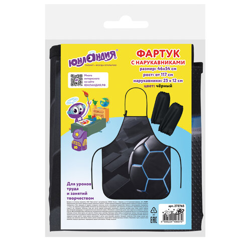 Фартук с нарукавниками для уроков труда ЮНЛАНДИЯ, регулировка по росту, 46х54 см, "Soccer ball", 273765