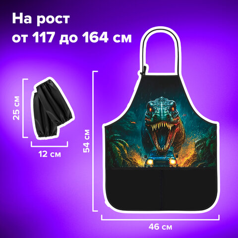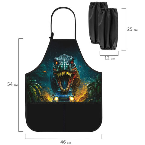 Накидка фартук с нарукавниками для труда BRAUBERG KIDS, 2 кармана, 46x54 см, "Dino chase", 272454
