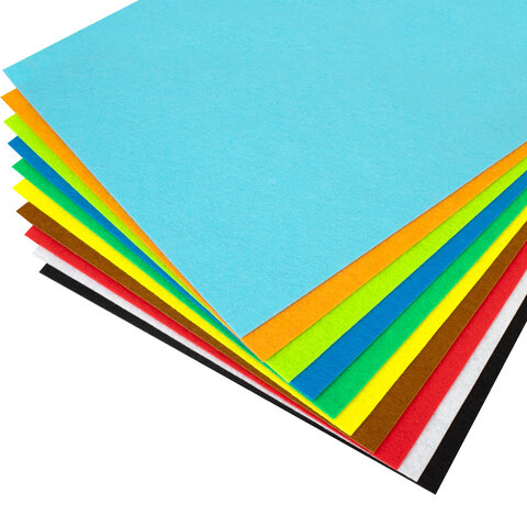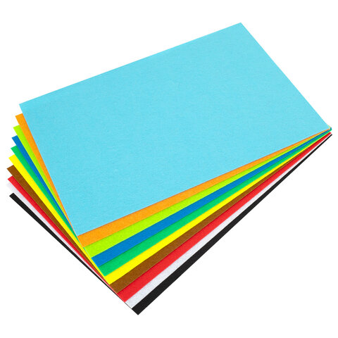 Фетр супер жесткий А4, 1 мм, 10 листов, 10 цветов, плотность 160 г/м2, ОСТРОВ СОКРОВИЩ, 665667