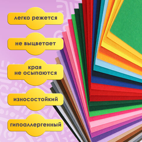 Цветной фетр ОСТРОВ СОКРОВИЩ предназначен для создания ярких творческих поделок дома, в школе или в детском саду. Используется для создания аппликаций и вышивки, легко режется и приклеивается на ровную поверхность.