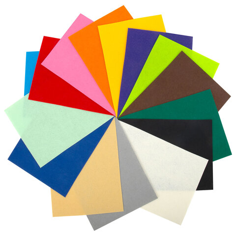 Фетр жесткий А4, 1 мм, 15 листов, 15 цветов, плотность 160 г/м2, ОСТРОВ СОКРОВИЩ, 665668
