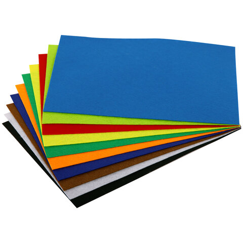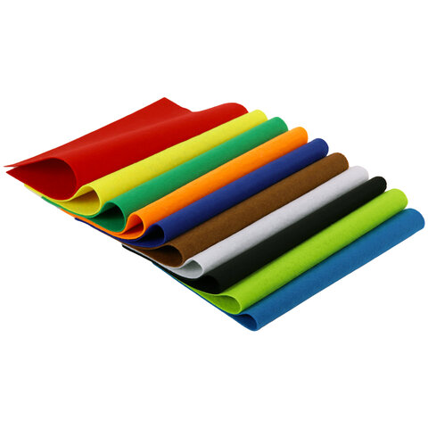 Цветной фетр МЯГКИЙ А4, 1 мм, 10 листов, 10 цветов, плотность 160 г/м2, ЮНЛАНДИЯ, 662048