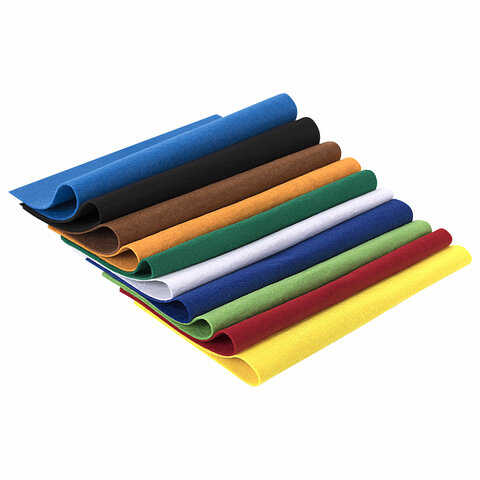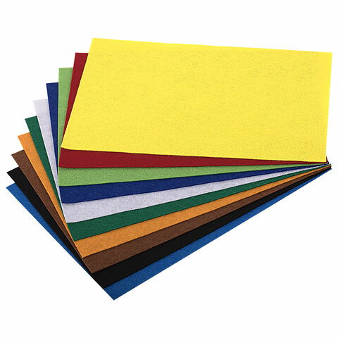 Цветной фетр МЯГКИЙ А4, 2 мм, 10 листов, 10 цветов, плотность 170 г/м2, ОСТРОВ СОКРОВИЩ, 660088