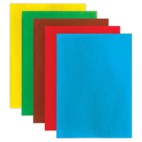 Цветной фетр МЯГКИЙ А4, 2 мм, 5 листов, 5 цветов, плотность 170 г/м2, ОСТРОВ СОКРОВИЩ, 660620