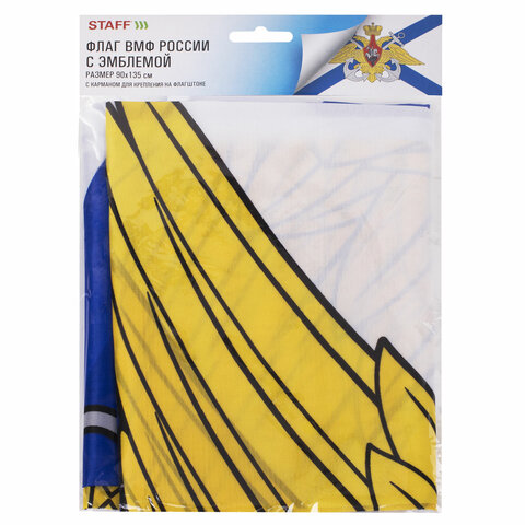 Флаг ВМФ России "Андреевский флаг с эмблемой" 90х135 см, полиэстер, STAFF, 550234