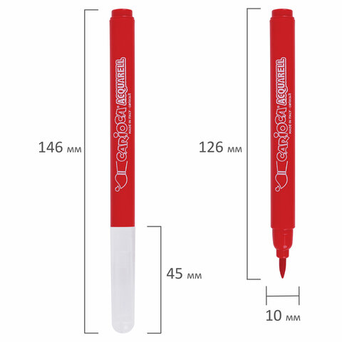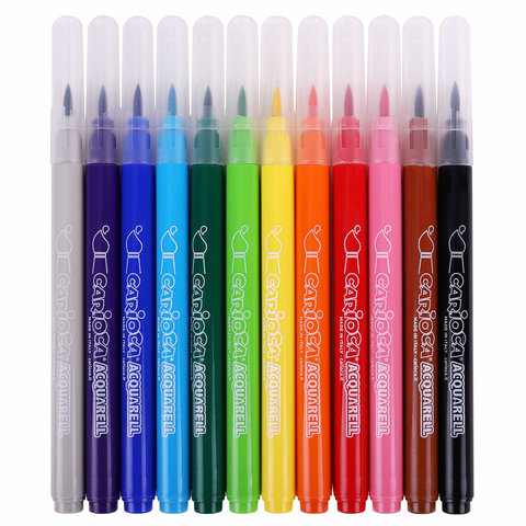 Фломастеры акварельные CARIOCA (Италия) "Aquarell", 12 цветов, наконечник-кисть, смываемые, картонный конверт, 42747