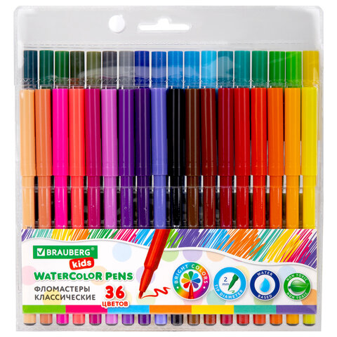 Фломастеры BRAUBERG KIDS КЛАССИЧЕСКИЕ 36 цветов, вентилируемый колпачок, ПВХ-упаковка, 152603