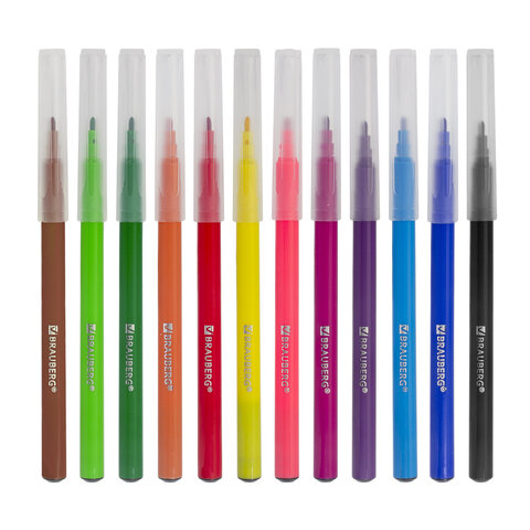 Набор фломастеров BRAUBERG "PREMIUM" с насыщенными, яркими цветами в количестве 12 штук. Чернила на водной основе практически не имеют запаха, не токсичны и легко смываются с большинства материалов и тканей.