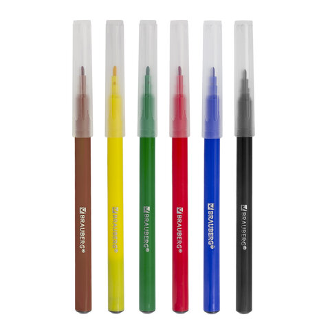 Набор фломастеров BRAUBERG "PREMIUM" с насыщенными, яркими цветами в количестве 6 штук. Чернила на водной основе практически не имеют запаха, не токсичны и легко смываются с большинства материалов и тканей.