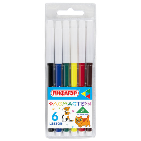 Фломастеры ПИФАГОР, "ВЕСЕЛЫЕ ПИТОМЦЫ", 6 цветов, невентилируемый колпачок, 152451