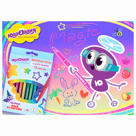 Фломастеры с блестками ЮНЛАНДИЯ "ЮНЫЙ ВОЛШЕБНИК" отлично подходят для рисования и раскрашивания даже самым маленьким художникам.