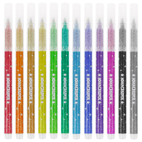Фломастеры с блестками ЮНЛАНДИЯ 12 цветов, "ЮНЫЙ ВОЛШЕБНИК", ударопрочный наконечник, вентилируемый колпачок, картон, 151650