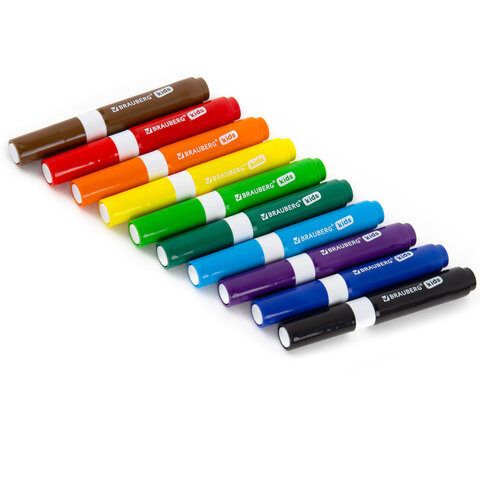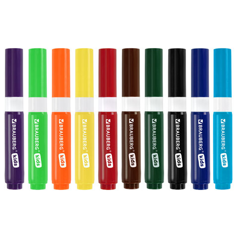 Фломастеры суперсмываемые толстые для малышей BRAUBERG KIDS, 10 цветов, ПВХ-упаковка, 152605