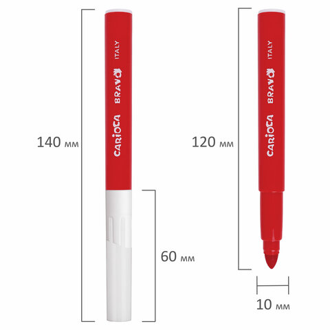 Фломастеры утолщенные CARIOCA (Италия) "Bravo", 12 цветов, суперсмываемые, 42755