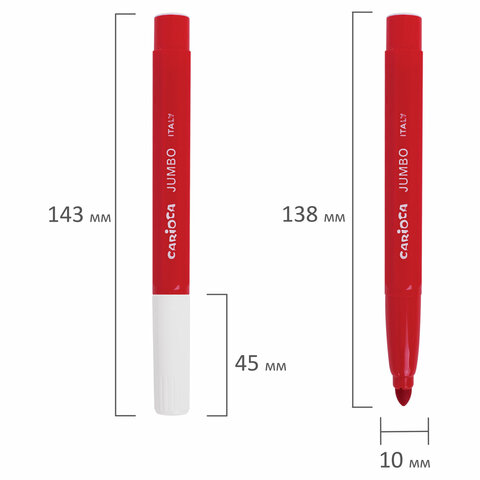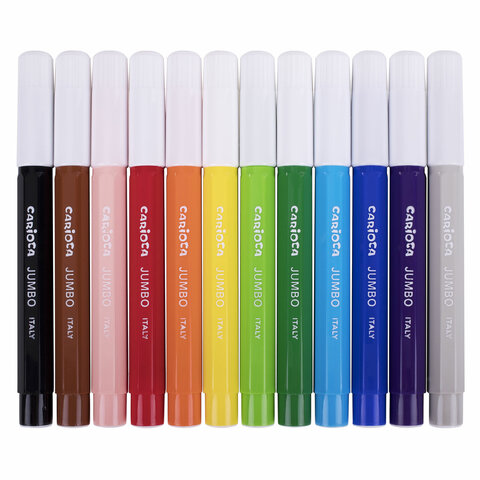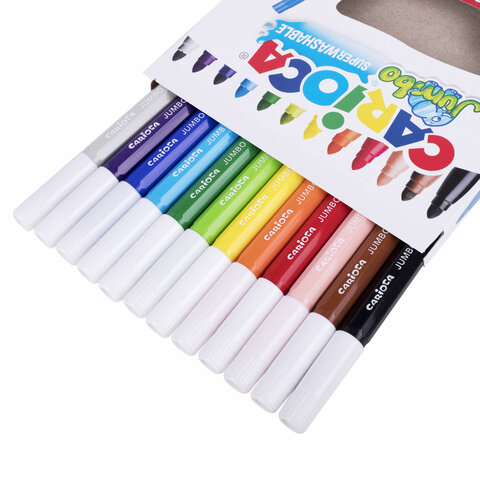 Фломастеры утолщенные CARIOCA "Jumbo", 12 цветов, суперсмываемые, вентилируемый колпачок, картонная упаковка, 40569