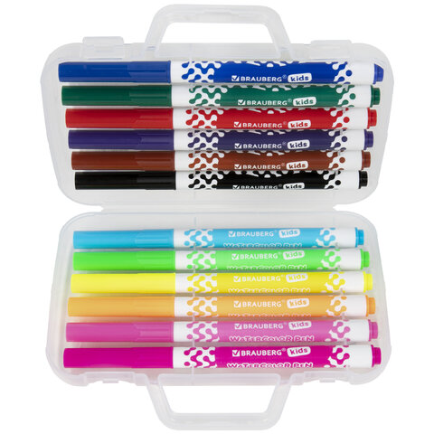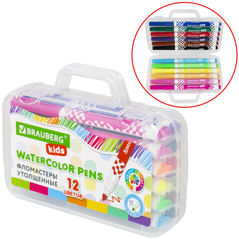 Фломастеры в портфельчике утолщенные 12 цветов, вентилируемый колпачок, BRAUBERG KIDS, 152185