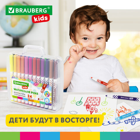 Фломастеры в портфельчике утолщенные 24 цвета, вентилируемый колпачок, BRAUBERG KIDS, 152186