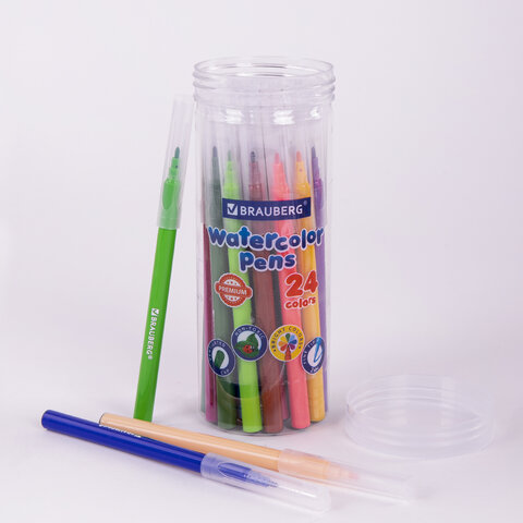 Фломастеры в тубе классические 24 цвета, вентилируемый колпачок, BRAUBERG "PREMIUM", 152199