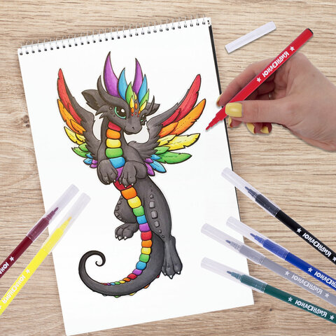 Фломастерами ЮНЛАНДИЯ "КЛАССНЫЕ" легко наполнять цветом картинки в раскраске и дать волю воображению и создать сочный рисунок, искрящийся красками. Настолько удобны в использовании, что с ними справляется даже самый юный художник.