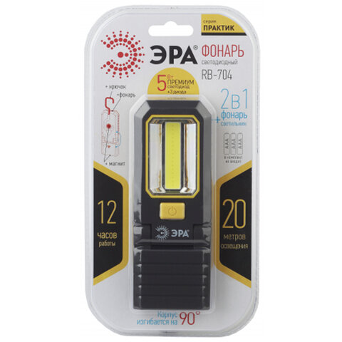ЭРА RB-704 - многофункциональный светодиодный фонарь с режимом светильника и двумя типами крепления.