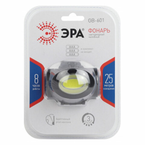 ЭРА GB-601 - светодиодный налобный фонарь с тремя режимами работы и адаптивным углом наклона.