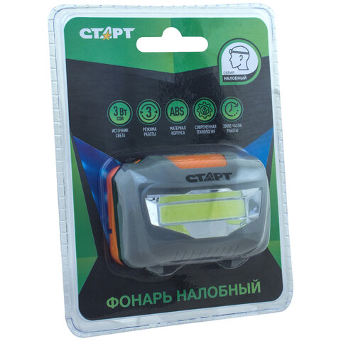 Фонарь налобный СТАРТ 3Вт COB, 3 режима, влагозащита, 3хААА (не в комплекте), LOE 203-C1, 12281