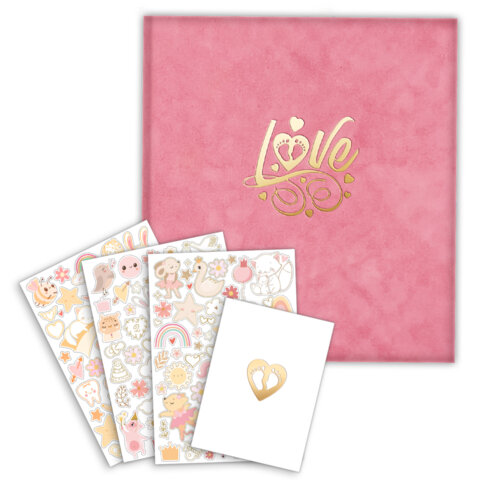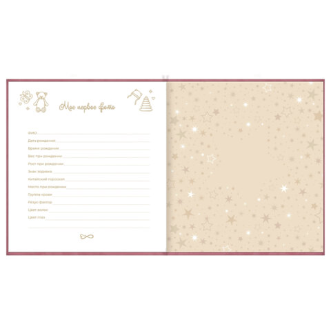 Фотоальбом-анкета детский 23х25 см, 32 листа, стикеры, открытка, конверт, розовый бархат, BRAUBERG, 391419