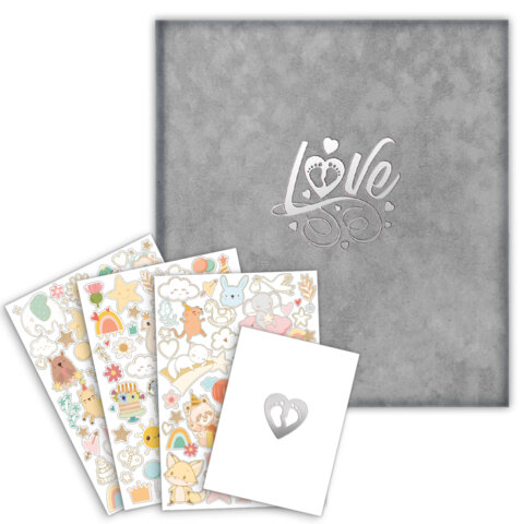 Фотоальбом-анкета детский 23х25 см, 32 листа, стикеры, открытка, конверт, серый бархат, BRAUBERG, 391422