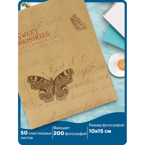 Фотоальбом BRAUBERG "Бабочка, крафт" на 200 фото 10х15 см, твердая обложка, термосварка, 391164